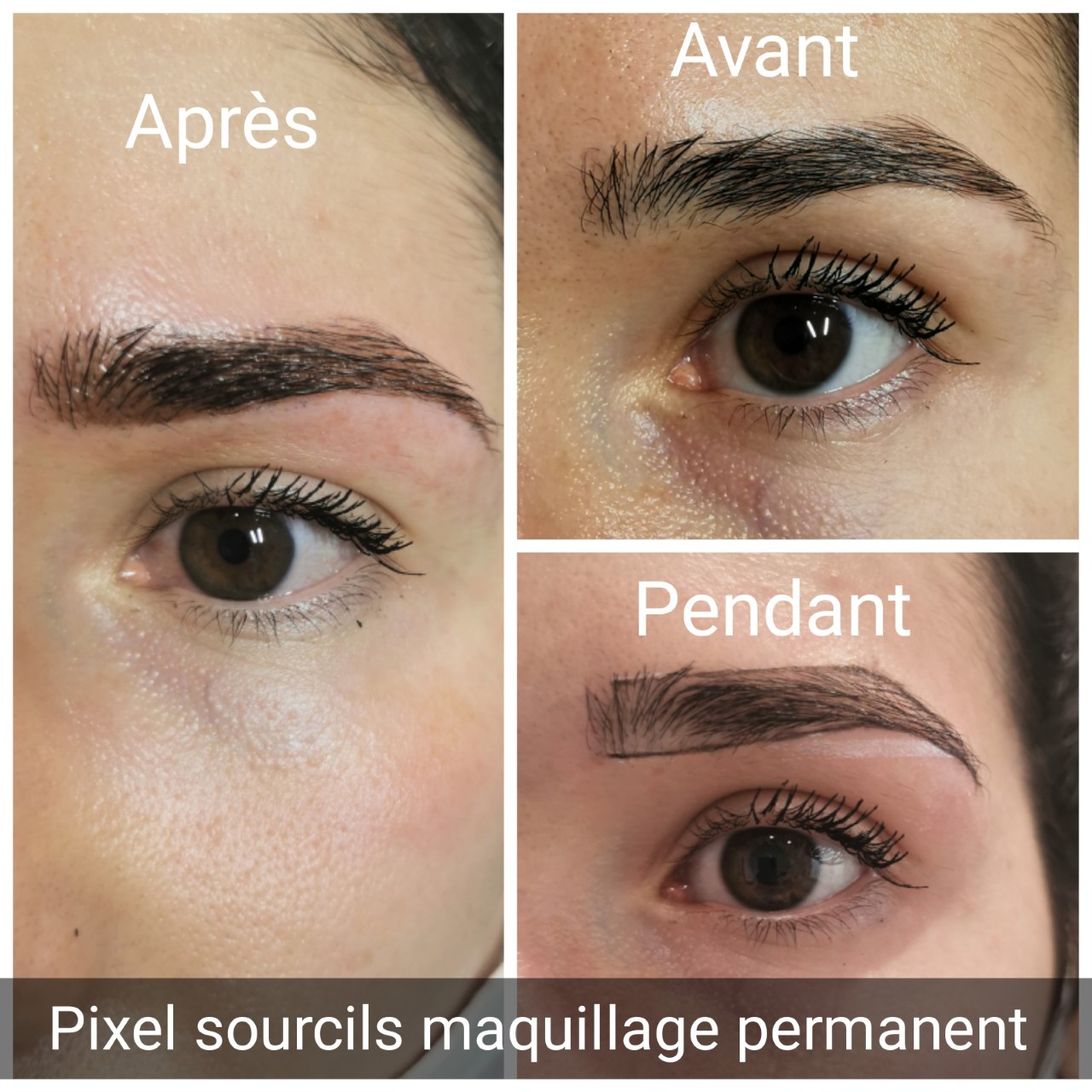 L’effet pixellisé sourcils, dégradé et fondu très naturel. 3 effets peuvent être réalisés, ultra naturel, défini, ou hautement défini.