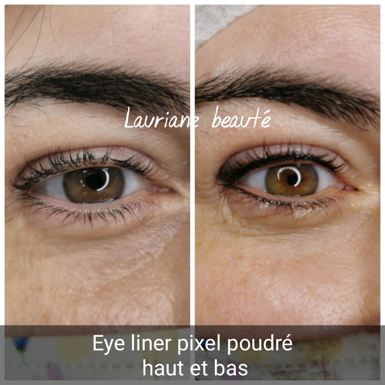 L’eye liner pixel poudré. On peux obtenir des effets différents en fonction du style de la cliente.